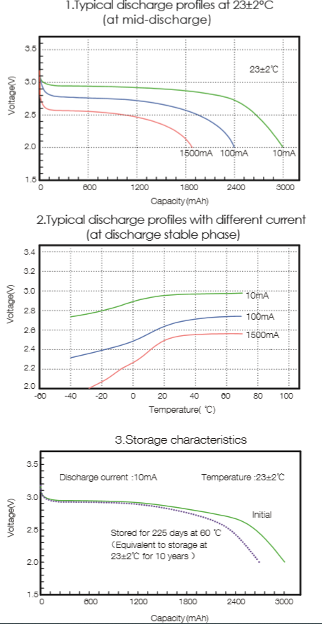 1. Customized 3V MnO2 Lithium Primary Battery 3000mAh CP505050 Pouch Cell Characteristic